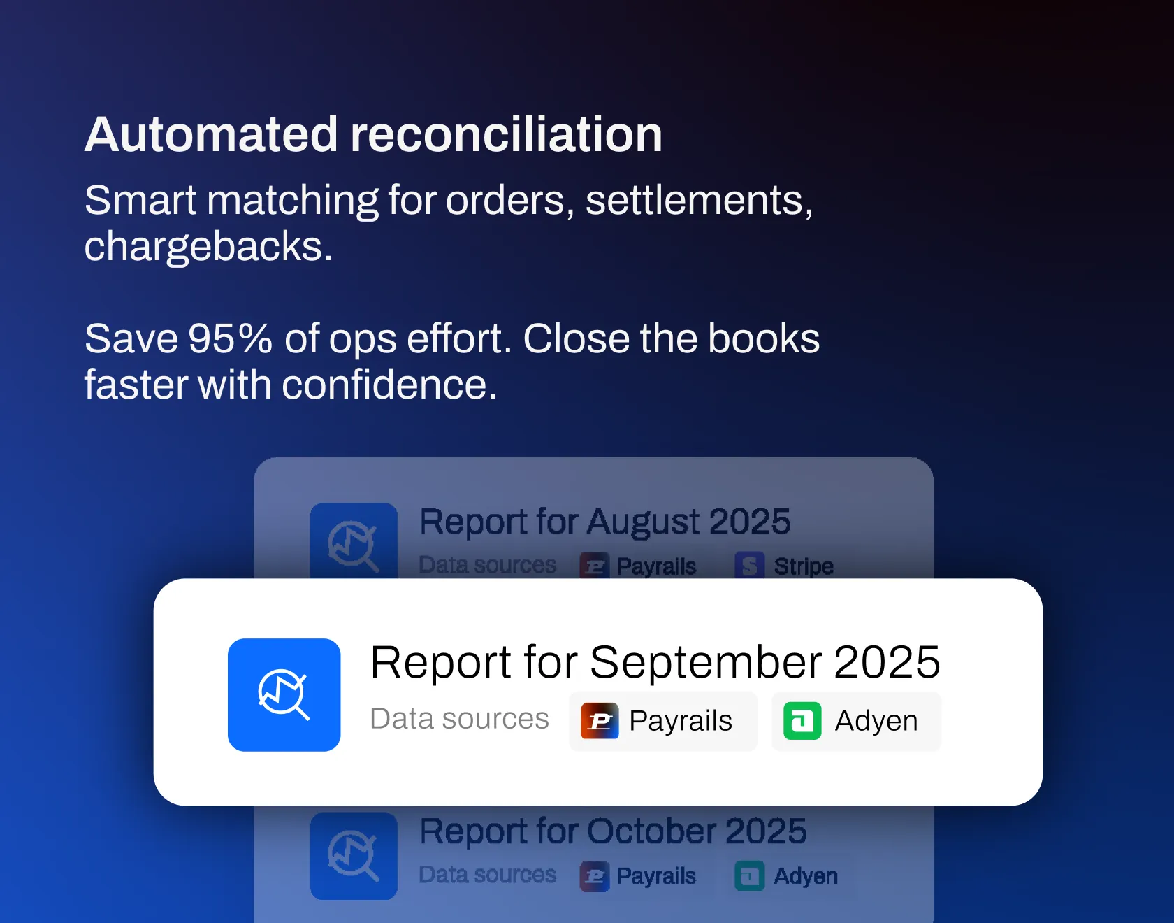 Manual reconciliation and inconsistent reporting make it harder to close the books – and harder to scale. Payrails turns your payment lifecycle from a bottleneck into a strategic advantage.