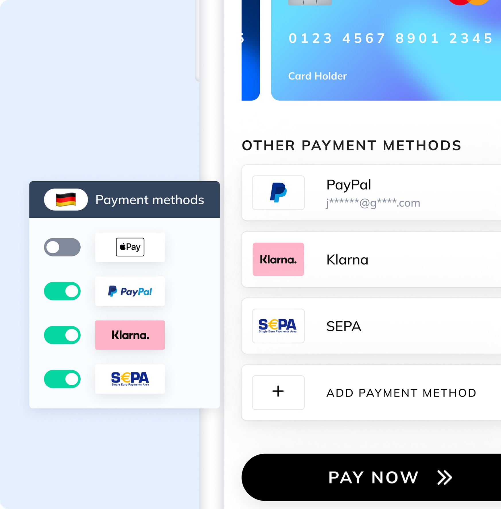 Customize your checkout pages for local markets and specific user groups. Payrails enables retailers to tailor payment modules and add locally preferred payment methods, all from one central platform.