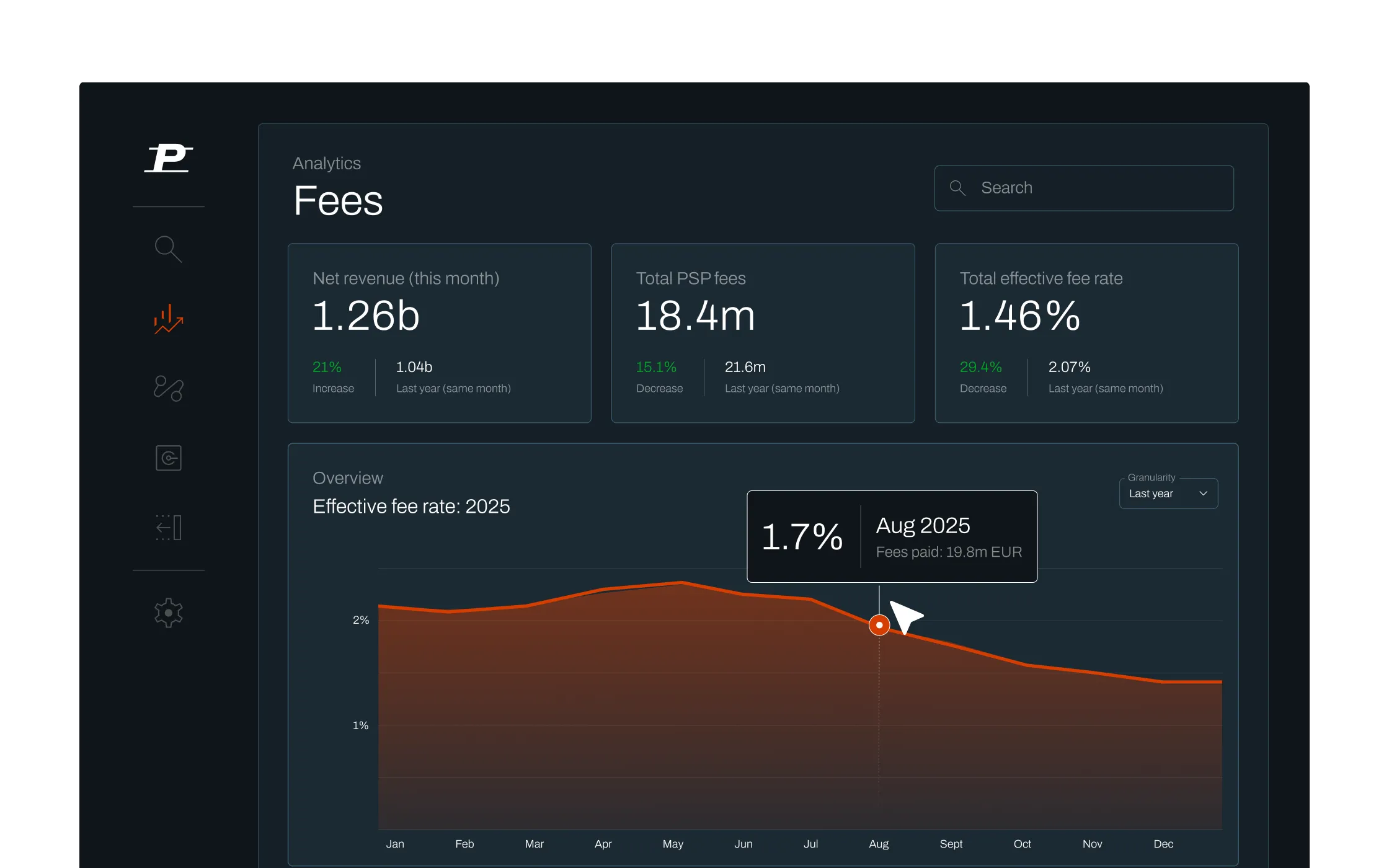 - Benchmark effective rates across PSPs, payment methods, regions, and entities