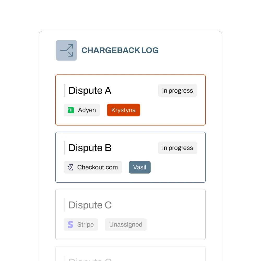 One system for all chargebacks, regardless of PSP. Consistent statuses, ownership, deadlines, and evidence standards.