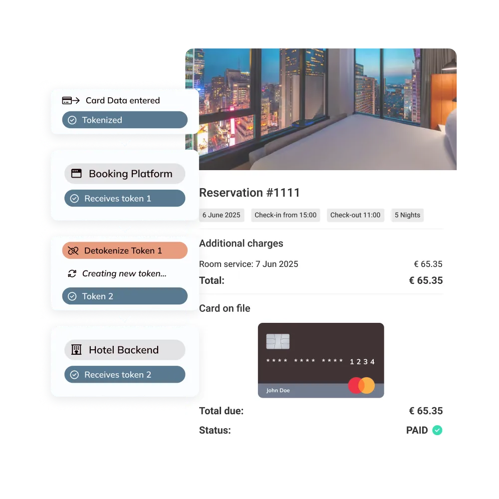 Tokens structured per guest, per booking, and per stay — designed for the way hospitality platforms actually operate across PMS, CRS, and booking engines.