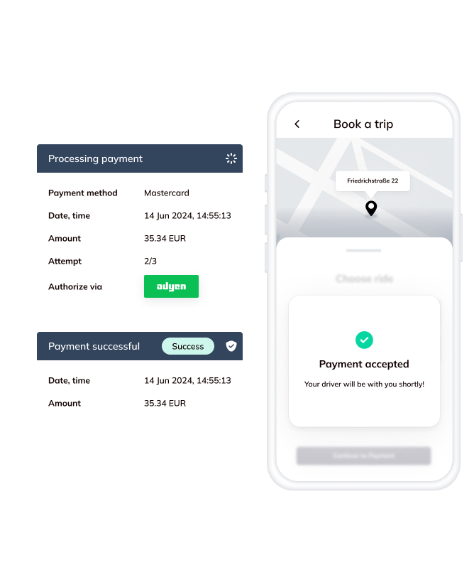 Please all stakeholders in your payment life cycle. Make payments seamless for passengers while securing income for gig economy drivers. Payrails streamlines the entire payment process, ensuring payments go through as they should with minimal technical effort.
