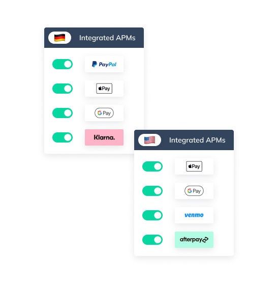 Take advantage of the most cost-effective payment processing conditions and lower costs by easily integrating local payment providers and payment methods through one single layer.